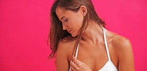 Close up portrait of a pretty girl in white bikini