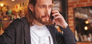 Cool bearded man talking on phone near the bar