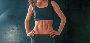 Muscular young woman athlete on black